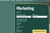 “Menjadi komunikator yang efektif dan pemecah masalah yang kreatif, dibekali dengan keterampilan dan wawasan komersial yang Anda butuhkan untuk berkarir di bidang pemasaran dan peran manajerial yang lebih luas. Anda akan belajar mengidentifikasi keunggulan kompetitif, dan mengembangkan perangkat yang Anda butuhkan untuk merespons peluang pasar. Kami akan memberikan Anda pengalaman belajar yang berfokus pada praktik dan wawasan industri, mengembangkan Anda menjadi profesional pemasaran yang menyeluruh,” demikian keterangan di laman program Marketing BSc (Hons) University of Bradford.